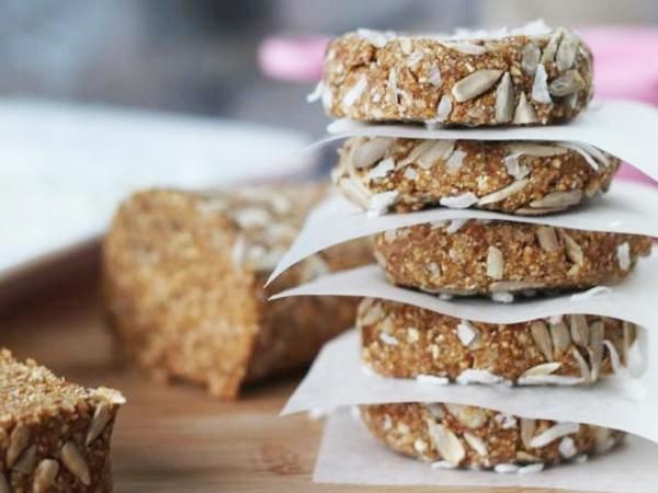 Retire del tazón y machaque las semillas de girasol en la mezcla. Forma un tronco y córtalo en 12 rebanadas iguales.