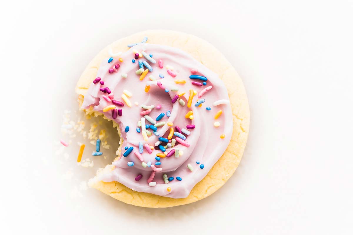 Siempre estoy tentado por las grandes galletas de azúcar estilo panadería de supermercado, pero seamos honestos, siempre decepcionan. No pueden acercarse al sabor de las galletas caseras recién horneadas. Así que aquí hay una solución deliciosa ~ una receta fácil de hacer en la cocina. Es una masa no refrigerada que se puede mezclar y cocinar en un instante. Involucre a los niños, pueden aprender los colores mezclando glaseado pastel y los más pequeños pueden cuidar los destellos.
