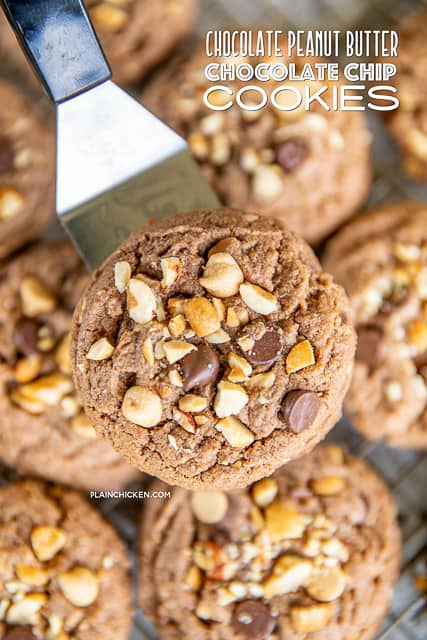 ¡Estas galletas de chocolate con mantequilla de maní son las MEJORES! No soy una persona muy dulce y no podía dejar de comer estas galletas. Le di la mayoría de las galletas a un amigo. Su esposo los llevó al trabajo y todos los amaban. La gente vino a él todo el día solo para decirle lo deliciosas que estaban estas galletas. Así que no hace falta decir que estas son las mejores cookies.