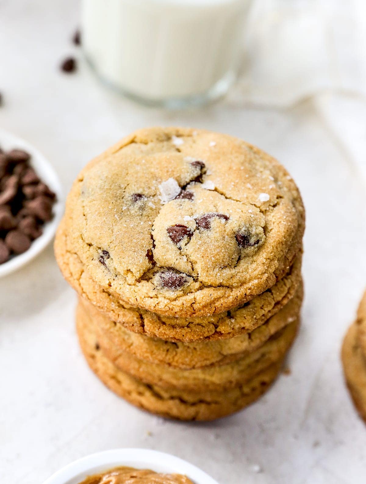 - Chispas o trozos de chocolate con leche – Tiendo a preferir el chocolate negro en las galletas, pero no con las galletas de mantequilla de maní. Las chispas de chocolate con leche son mis favoritas cuando se trata de mantequilla de maní. La combinación de chocolate con leche y mantequilla de maní es perfecta. ¡Me encantan las chispas de chocolate con leche de Guittard!