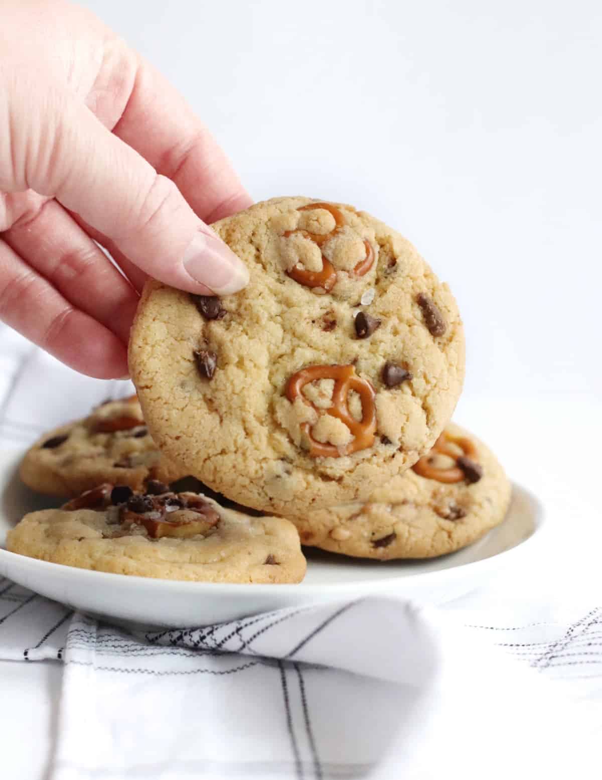 Las Kitchen Sink Cookies son galletas blandas y espesas cargadas con deliciosos brebajes como chispas de chocolate, trozos de caramelo y sabrosos pretzels. ¡Todos se vuelven locos por eso!
