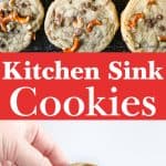 Las Kitchen Sink Cookies son galletas blandas y espesas cargadas con deliciosos brebajes como chispas de chocolate, trozos de caramelo y sabrosos pretzels. ¡Todos se vuelven locos por eso! Esta publicación puede contener enlaces de afiliados. Lea mi política de divulgación aquí.
