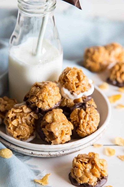 Galletas de copos de maíz con mantequilla de maní sin hornear