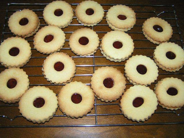 Cuando el pan esté frío junto con la mermelada de frambuesa, coloca las galletas encima.