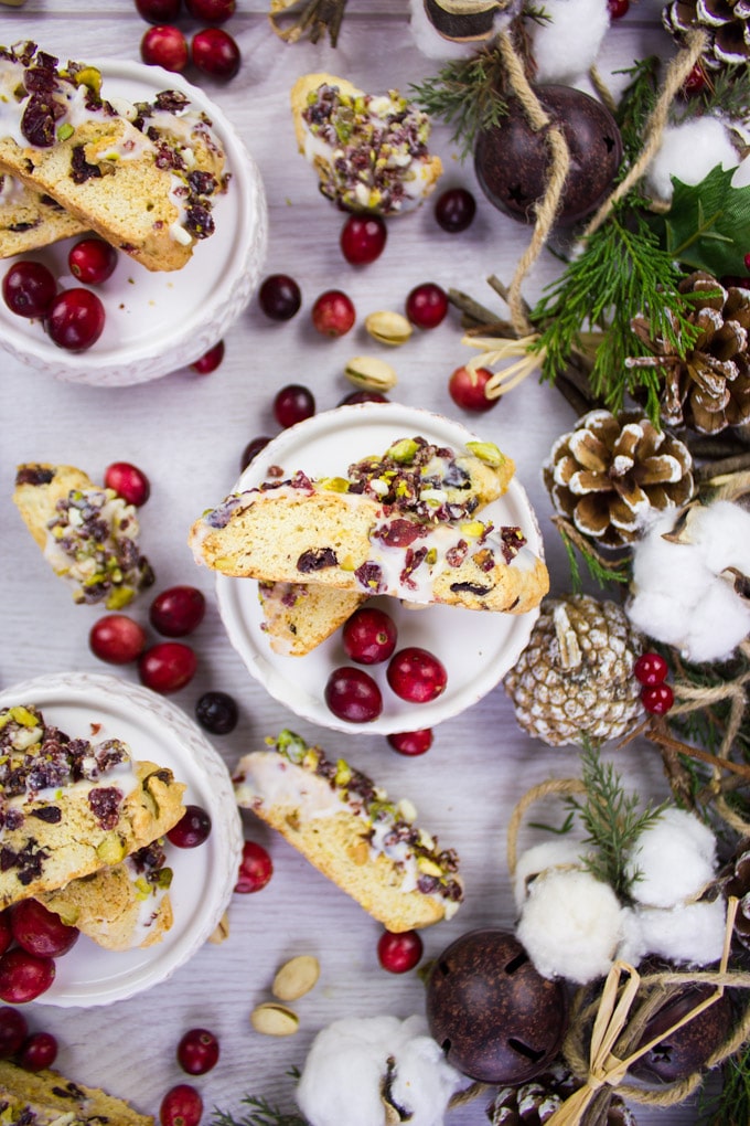 ¡Mejora tu juego de repostería navideña con un lote de estas galletas de arándano y pistacho! ¡La mejor receta de Biscotti con videos y consejos! ¡Estas galletas Biscotti están bañadas en chocolate blanco y cubiertas con pistachos picados y arándanos para darle un sabor festivo!