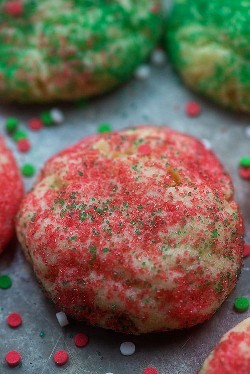 Las GALLETAS DE AZÚCAR DE NAVIDAD son galletas blandas, espesas y masticables que ruedan en salpicaduras de rojo y verde. ¡Estos son algunos de los dulces navideños más fáciles de hacer y se ven tan festivos y lindos!