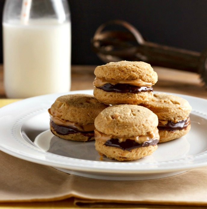 Estas galletas de sándwich de chocolate con mantequilla de nueces recuerdan a las galletas de mantequilla de nueces, solo que son más saludables y sabrosas con el relleno de chocolate agregado.