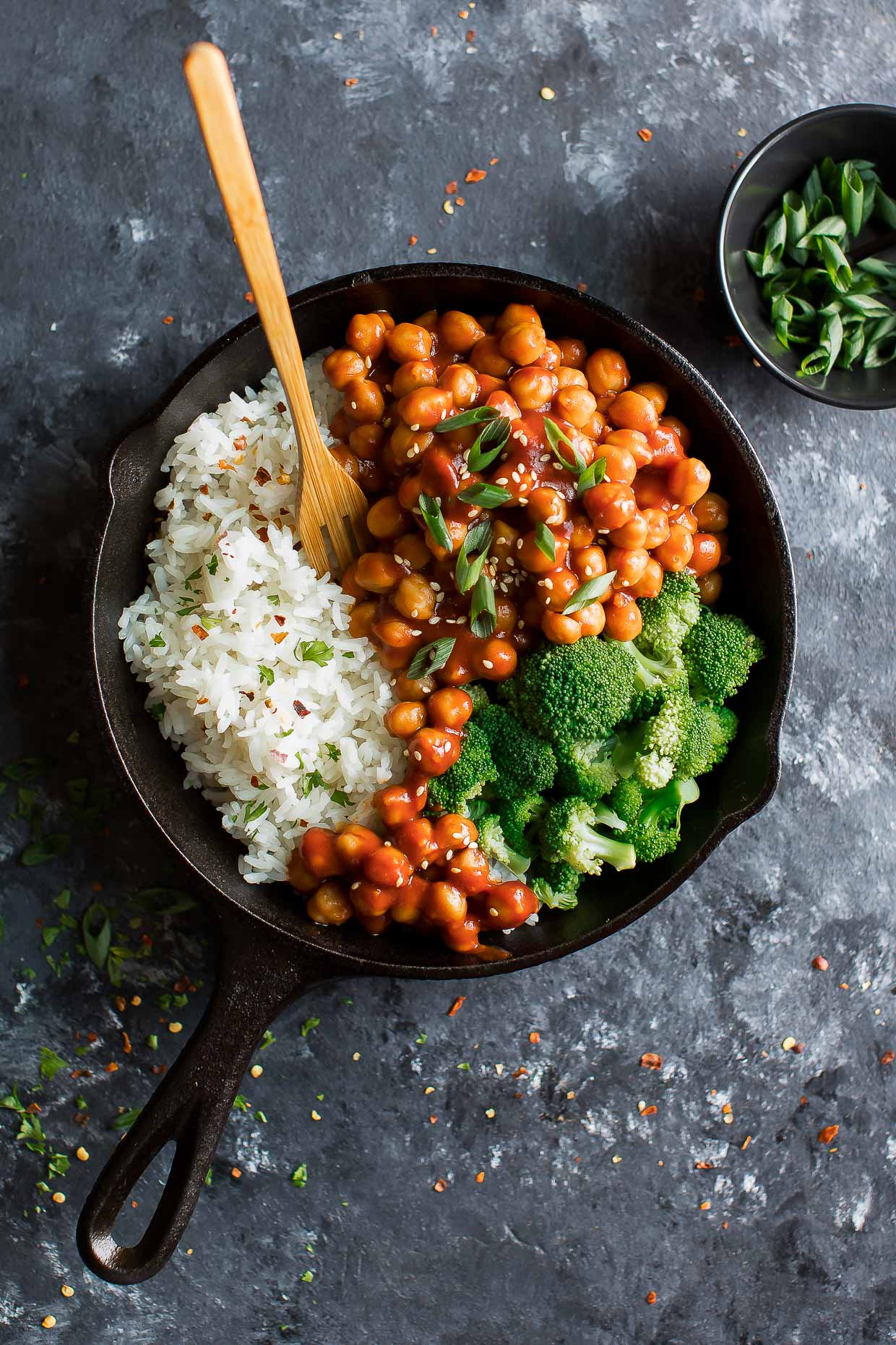 ¡Un toque vegano en este clásico de comida para llevar, los garbanzos agridulces son rápidos, picantes y un poco picantes!