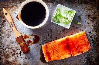 Adaptado de la receta de Tim Cushman http://www.foodandwine… con los ingredientes que tenía a mano, reduciendo el azúcar y agregando vinagre para el bocado. Servido con jengibre y albóndigas de arroz. -mawhorts