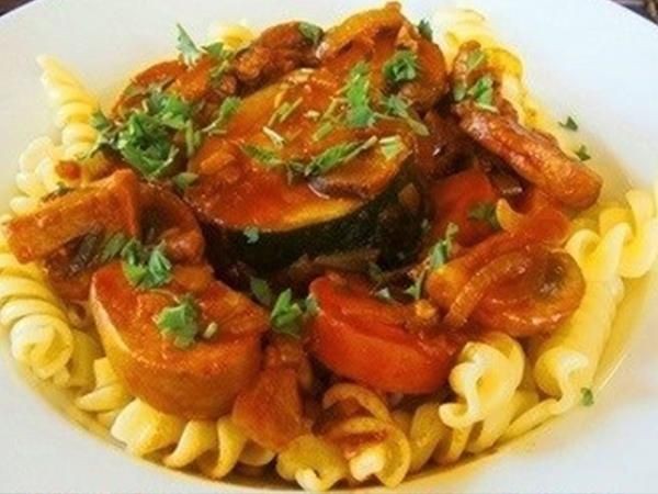 Se puede servir con masa en espiral, patatas saladas o albóndigas de patata.