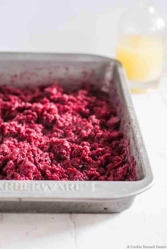 - Vierta en una fuente para hornear de 9 x 13 y coloque en el congelador. Recoge la baba cada media hora para barrer la mezcla con un tenedor. Repita hasta que esté completamente congelado, alrededor de cuatro horas.