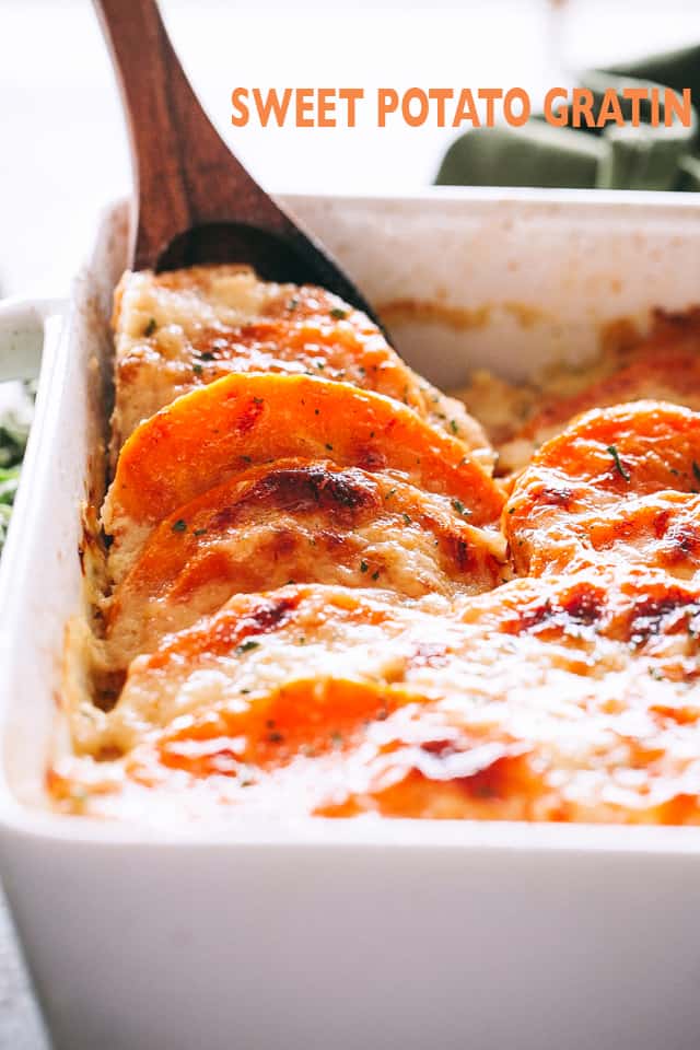 Gratén de la patata dulce – ¡La salsa cremosa, cremosa, cursi y cubierta hace que este gratinado de camote sea simplemente irresistible!