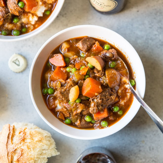 Dame un plato grande de guiness, estofado de ternera o cordero y estoy en el cielo. El estofado de res es uno de los alimentos básicos de invierno de Wisconsin, así que tan pronto como cae por debajo de 60, saco el horno holandés y me pongo a dorar la carne.