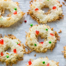 Los macarrones de corona solo requieren 4 ingredientes (¡más chispas!) Y son ideales para los amantes del coco. También son libres de gluten, por lo que son muy útiles para tener en tu bandeja de galletas navideñas si tienes un familiar con problemas de gluten.