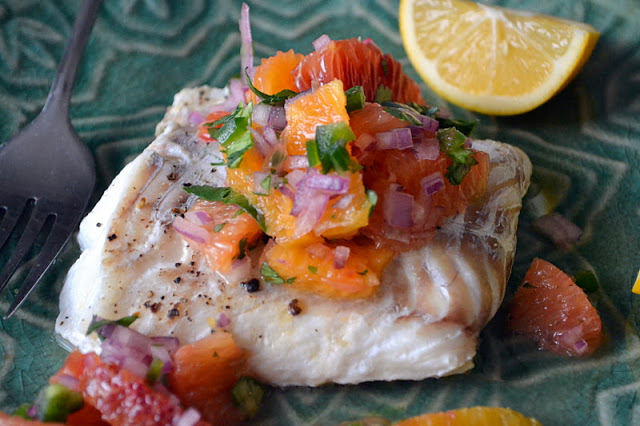 Halibut a la parrilla con salsa de cítricos ~ si alguna vez hubo un plato con mi nombre escrito, aquí está. Podría comerlo todos los días por el resto de mi vida ~ ¡es libre de gluten, bajo en calorías, paleo y Whole 30’s!