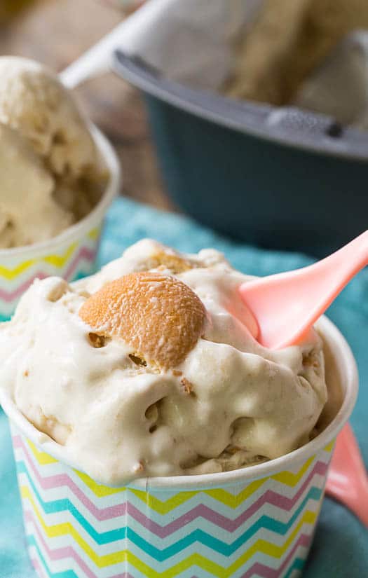 Para mi primer helado, probé una receta de helado de budín de plátano de allrecipes.com. Todos sabemos lo que es un amante del budín de plátano. Hago cupcakes de budín de plátano, barras de budín de plátano, panqueques y pastel de budín de plátano. ¡Nunca puedes tener demasiado budín de plátano en tu vida!