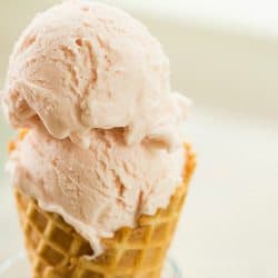 Lo creas o no, nunca antes había tostado fresas y la idea me convence totalmente. Hace un trabajo increíble al concentrar e intensificar su sabor. Aunque este helado contiene una cantidad aparentemente pequeña de puré de fresa (media taza), el producto final está literalmente lleno de un dulce y jugoso sabor a fresa.