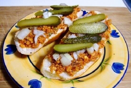 La versión “Hackepeter” es la versión de carne cruda y originalmente se hizo con carne de cerdo cruda picada. La versión en conserva se llama “cebolla picada”. Esta receta es la versión vegana. El hakepeter se puede servir en un pan fresco, baguette o una rebanada de pan para la cena. Usualmente uso encurtidos al estilo europeo.