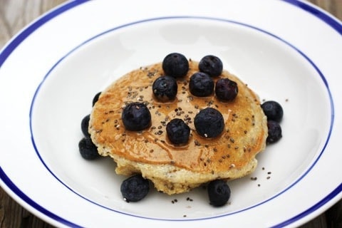 Puse un poco de mantequilla de almendras encima y espolvoreé semillas de chía y arándanos encima. Luego agregué una pizca de jarabe de arce, que fue una gran adición. ¡Todo el tiempo sentí que estaba comiendo un panqueque esponjoso y espeso!