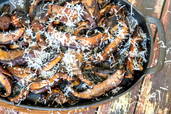 El ajo y el queso simplemente resaltan el sabor terroso de estos champiñones carnosos y son el acompañamiento perfecto. O, en este caso, el plato principal: sí, me comí toda la olla. No de una sentada, por supuesto: mitad para la cena, mitad para la merienda (son deliciosos a temperatura ambiente).
