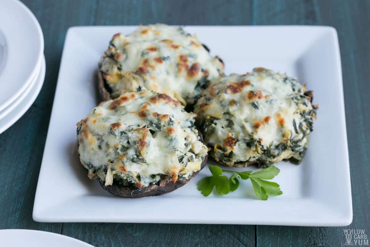 Si te gusta la salsa de champiñones con espinacas y alcachofas, te encantarán los champiñones portobello rellenos con espinacas y alcachofas. Sírvelas como aperitivo o guarnición.