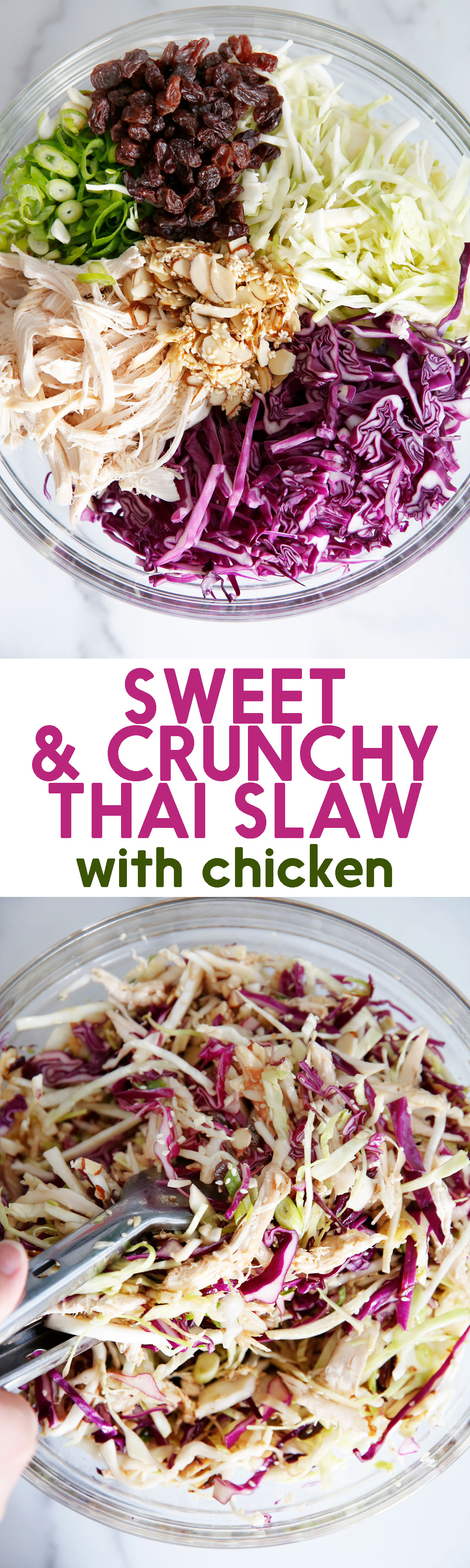 ¿Quién quiere una guarnición súper fácil, nutritiva y sabrosa? ¡Esta ensalada de pollo tailandesa dulce y crujiente funciona como guarnición crujiente en una barbacoa y como una opción de almuerzo ligero para preparar comidas! ¡También es libre de gluten y paleo amigable!