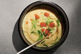 Odiaba cualquier intrusión de sabores fuertes como cebollino y cubos de spam, y mucho menos huevos de abadejo salados, en mis delicados huevos al vapor. Este último era el favorito de mi abuela, pero esa noche prometió que no lo agregaría a la mezcla de huevo. Dijo que solo quería comérselo encima de su arroz. Así que confié en ella y me dediqué a poner la mesa con palillos, cucharas y cualquier banchan que hubiera para sacar de la nevera.