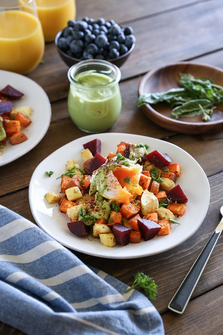 Manteniendo esta receta sin granos y paleo-amigable, me salteé el panecillo inglés y serví el huevo escalfado sobre los tubérculos asados con salsa holandesa de aguacate de California. Si quieres lucir realmente elegante, puedes prepararte. Verduras de raíz de cúrcuma asadas con jengibre naranjaTe lo enseñé hace unos meses, o simplemente patatas fritas caseras. Si no puede usar sans cookie pero aún desea mantenerlo paleo, siempre puede hacer un lote de estos Galletas sin cereales.