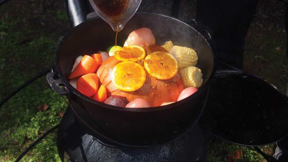 Asegúrese de que el jamón sea lo suficientemente pequeño para caber en su horno de campaña. Usamos Jack Jack Tennessee Honey Liqueur como whisky en esta receta. Usamos un Ozpig para esta receta, para el paso 2: use la placa de recalentamiento en el costado del Ozpig para hervir.