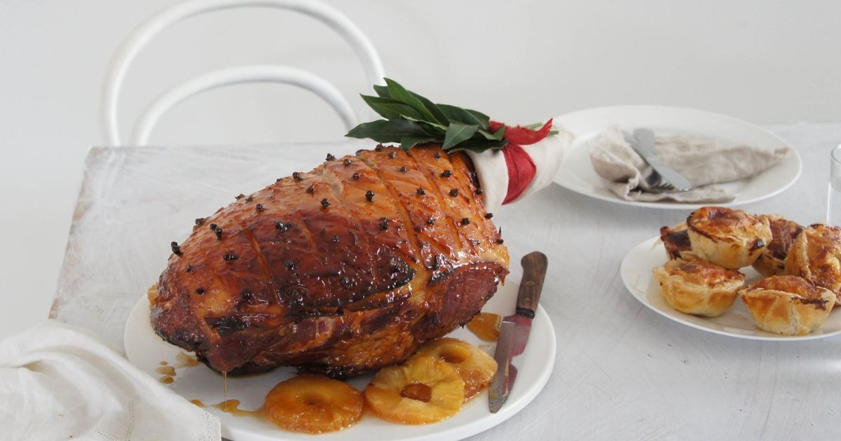 Precaliente el horno a 180° C. Coloque el jamón en la parrilla, cocine por 30 minutos. Retire del horno y deje enfriar.