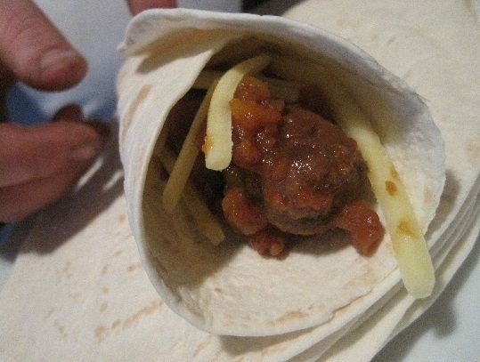 Cuando esté listo para comer, hornee las envolturas en el horno, rellene con la cantidad deseada de relleno y espolvoree con queso.
