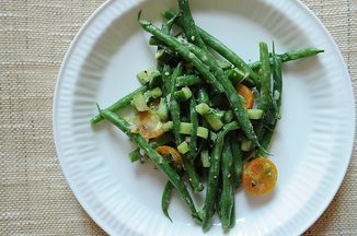 NB: si está haciendo esto en un picnic o preparándose para una comida informal, una fiesta en la calle, etc., tenga en cuenta que los ácidos en la salsa y los tomates cherry decolorarán las judías verdes si se agregan demasiado pronto. Entonces, en lugar de agregar los tomates con los pepinos y los frijoles y luego mezclarlos con la salsa, coloque los tomates picados en un frasco mediano con la salsa. Pon los chalotes y el vinagre en ese frasco también, en lugar de la ensalada. Básicamente, combinará los pepinos y los frijoles en un tazón, y justo antes de que esté listo para servir, lo mezclará con la salsa, los tomates cherry y la chalota. Los jugos de tomate, entre otras cosas, al combinarlos con los demás ingredientes de la salsa, la harán realmente sabrosa. ; o)