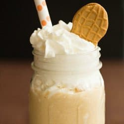 Porciones: 2 batidos pequeños Preparación: 5 minutos Total: 5 minutos Un batido de malvaviscos con mantequilla de maní cubierto con galletas de mantequilla de nueces picadas y crema batida.