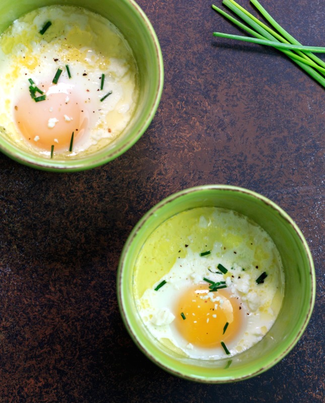 Huevos cetogénicos en olla a presión de 2 minutos en cocotte feta y hierbas –
