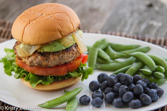 - Mientras tanto, precaliente la parrilla. Engrasa ambos lados de cada pan y colócalos debajo de una rejilla hasta que estén dorados. Cubra cada bollo con una hamburguesa y los ingredientes deseados. Sirva con guisantes frescos y arándanos para una comida rápida y fácil entre semana.