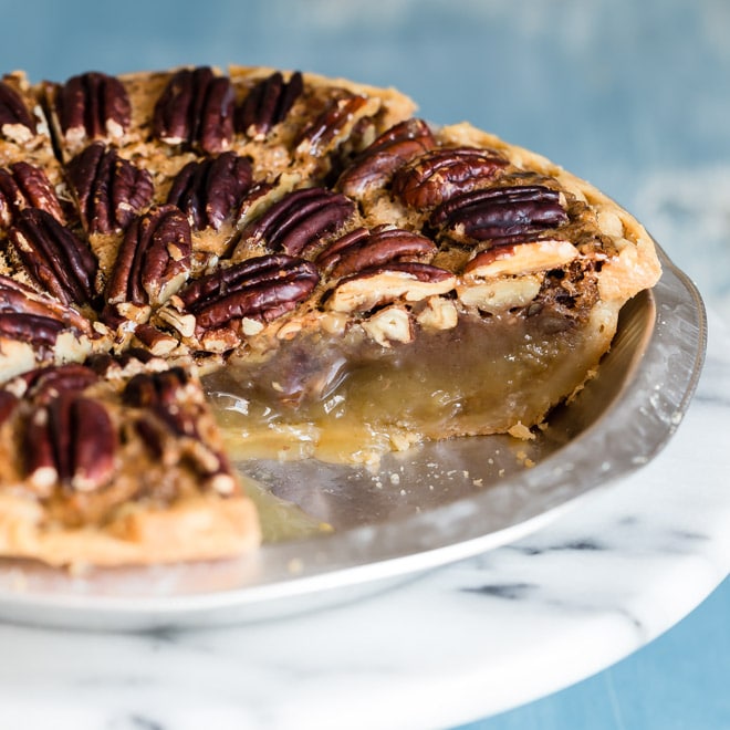 El mejor pastel de nuez tiene un relleno equilibrado y sabroso que no es demasiado dulce y una corteza mantecosa y mantecosa que nunca se empapa. ¡Aprende los secretos de ambos! Tipo de Cocina Americana Tiempo de Preparación: 5 minutos Tiempo de Cocción: 1 hora y 30 minutos Tiempo Total: 1 hora y 35 minutos Porciones: 8 rebanadas Calorías: 618 kcal
