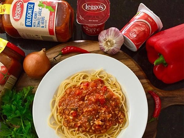 - 2 frascos de Leggo Bolognese – salsa de pasta espesa con vino tinto, tomate espeso y hierbas