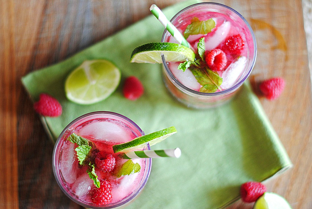 Coloca las frambuesas, las hojas de menta, el jugo de limón y el edulcorante en el fondo del vaso. Mezcle todas las frambuesas picadas y las hojas de menta, agregue el hielo y vierta el ron y la soda. Agregue algunas hojas de menta y frambuesas adicionales si lo desea; decorar con una cáscara de limón. ¡Gustar!