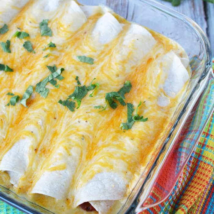 ¡Prepara una tanda doble de enchiladas de pollo con salsa de crema agria para congelar!