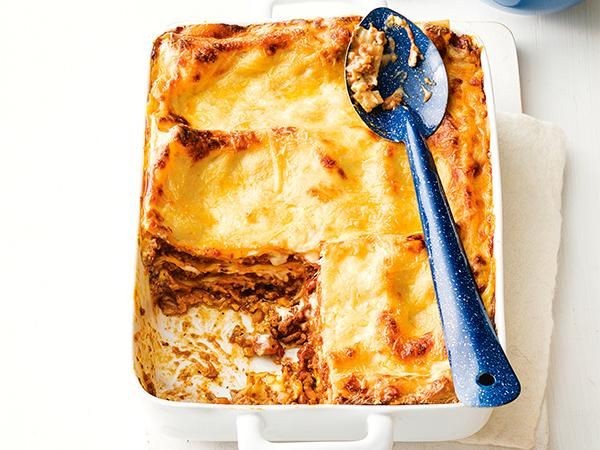 La salsa de carne debe ser lo suficientemente líquida para permitir que la lasaña se cocine bien. Si desea usar quesos bajos en grasa, seguirá funcionando bien. Puede usar queso cottage en lugar de queso cottage. Está bien si también agrega una capa de espinacas cocidas.
