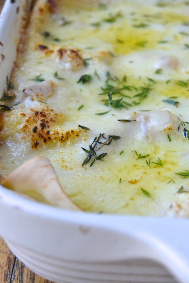 Esta lasaña de champiñones blancos es una lasaña rica, reconfortante y cursi infundida con sabores otoñales como champiñones, cebollino, tomillo, gruyère y marsala. Todo es madera y blanco cremoso y es muy delicioso.