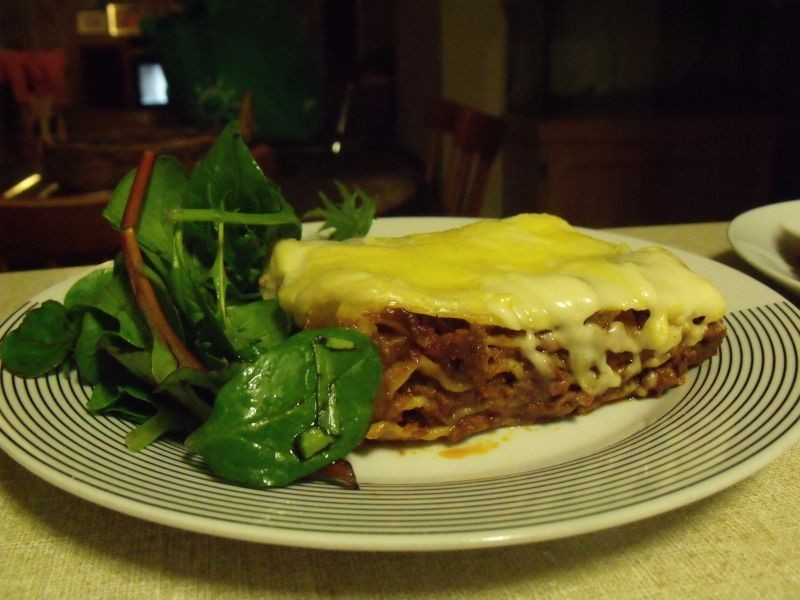 Deje reposar la lasaña durante al menos 15 minutos antes de cortarla.
