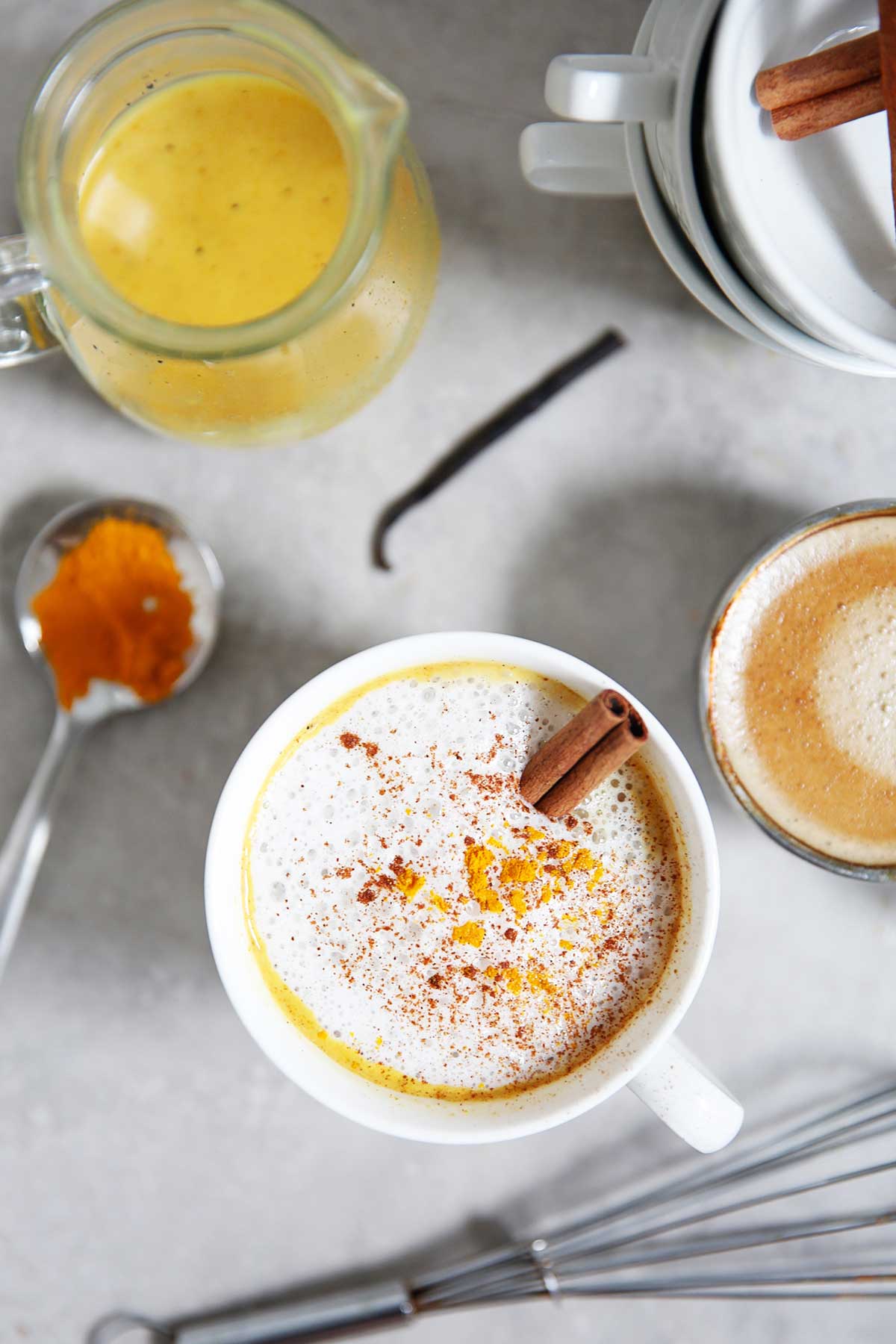 Cubra con un poco de leche espumosa, espolvoree con canela y cúrcuma molida y ¡disfrute!
