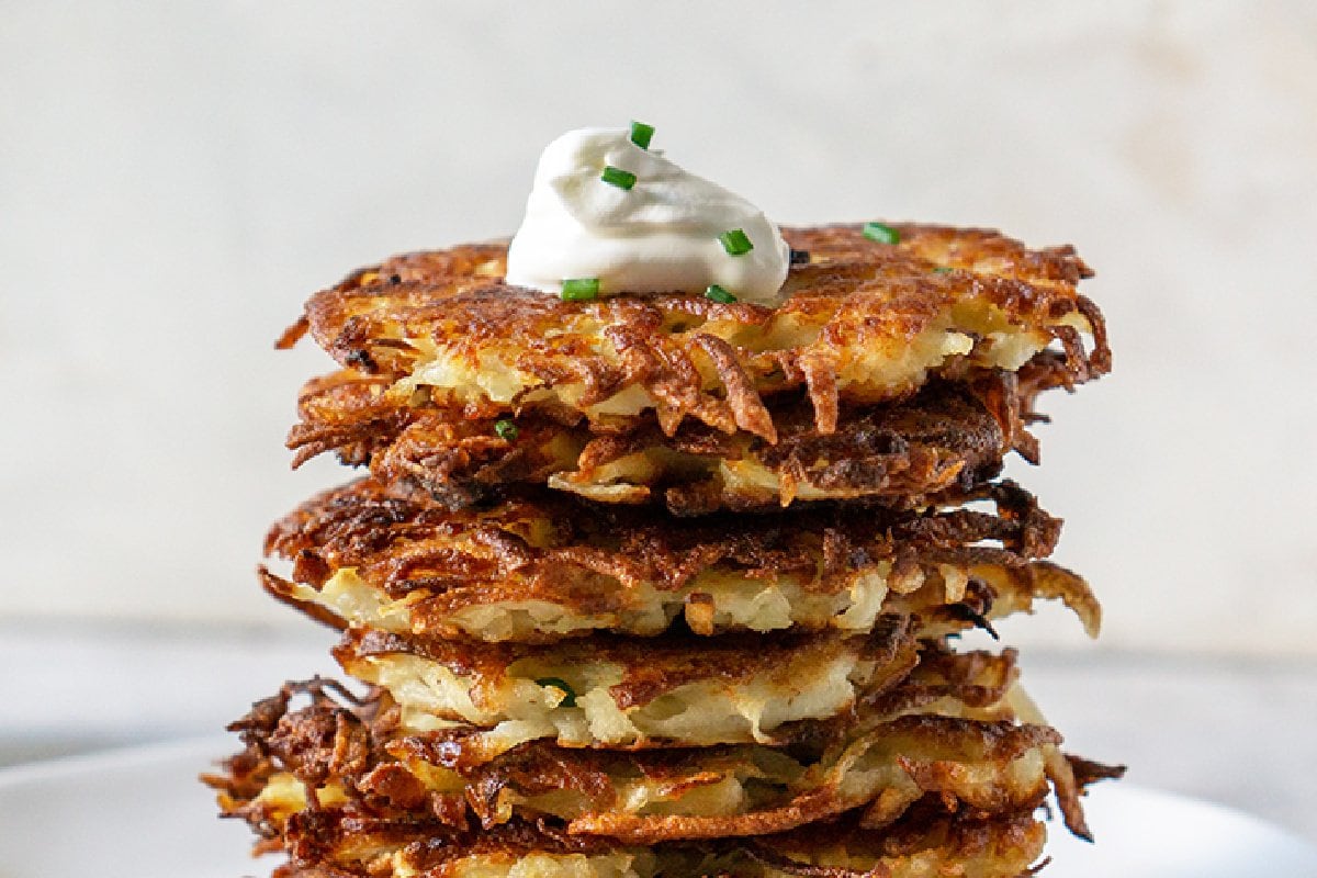 Y la siguiente pregunta más común: ¿Cuál es la diferencia entre las tortitas de patata y los latkes de patata? La respuesta es que son muy similares y usan los mismos ingredientes, la diferencia está en los pequeños elementos de preparación. Los hash browns también son similares, pero no tienen forma.