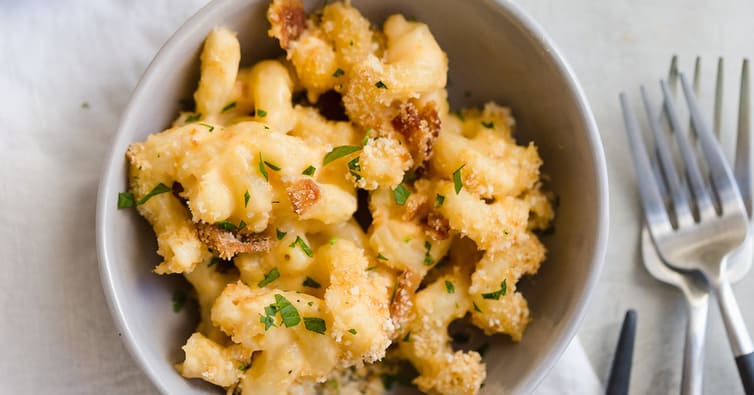 Si bien los macarrones con queso en la estufa son excelentes, me encanta la textura y el sabor a queso que obtienes al cocinarlos durante solo 20 minutos. La salsa de queso comienza a burbujear y el glaseado se vuelve un poco tostado y extracrujiente: es simplemente la perfección de los macarrones con queso.