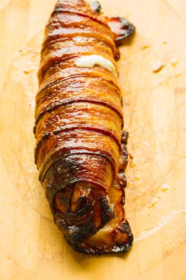 ¡Este lomo de cerdo envuelto en tocino relleno con queso azul es rápido de hacer y está lleno de sabor!