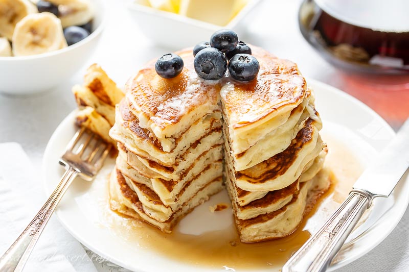 A nuestra familia siempre le han gustado los panqueques esponjosos de suero de leche, especialmente con un poco de mantequilla y mucho jarabe de arce caliente encima. Los panqueques eran algo frecuente los sábados por la mañana a medida que nuestros hijos crecían. ¡Un buen desayuno con los mejores panqueques de suero de leche es una excelente manera de comenzar el día!