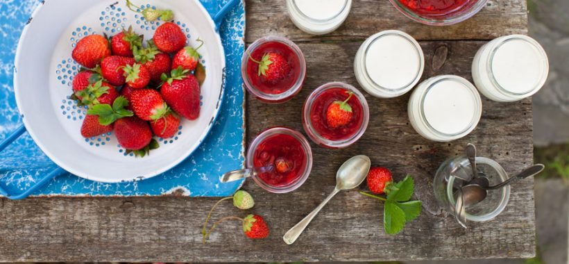 obtener la receta:: Crema Panna Cotta con mermelada de fresa