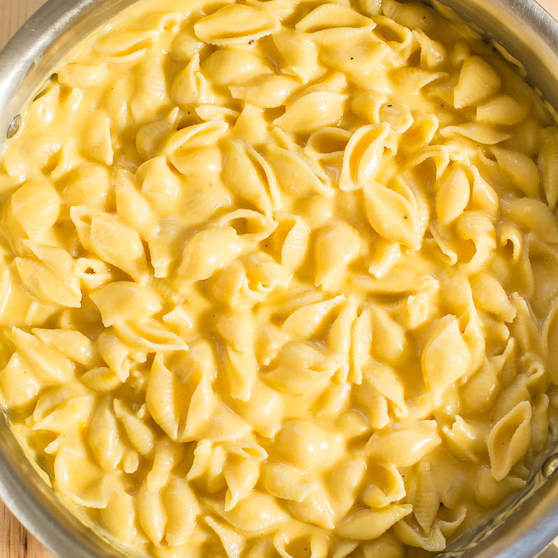 Usa tu forma favorita de masa. Me gusta usar conchas medianas para hacer conchas y queso, pero el rotini o lazo también es divertido. Y, por supuesto, los fideos clásicos también funcionarán aquí.