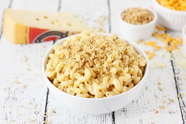 Si bien las migas de pan son opcionales, en realidad no lo son. La deliciosa y pegajosa combinación de queso instantáneo y pasta crocante y crocante con pan rallado y queso parmesano es celestial. Y algo más.